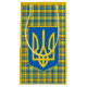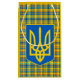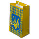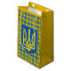 Bolsa de presentes rusticasmofável com padrão de xadrez amarelo e azul, com cores vermelhas e pretas. Tartan inspirado pelas cores da Ucrânia com o emblema ucraniano Tryzub.
