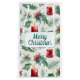 Linda bolsa de presente de Natal com padrões de natal verdes e vermelhos.