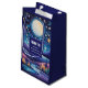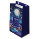Saco de presentes com uma bela ilustração. Vírus caprichoso e fantasioso. Uma lua grande brilhando com estrelas ao redor. Passando por uma bela paisagem de árvores, montanhas e um rio sinuoso. Incrível vibração mística mágica.