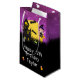 Essa bolsa de presente divertida e assustadora pode ser personalizada com um nome ou título, como filha, neta, sobrinha, amiga etc. Ele apresenta uma bruxa bonita ao lado de uma casa assombrada. Ao fundo está uma lua de cheio com morcegos e um céu noturno roxo com estrelas. O texto combina fontes decorativas e serif para um aspecto na moda e moderno. Isto é perfeito para o Halloween.