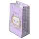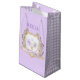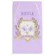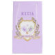 Encerre seu presente com esta linda bolsa de presente de aniversário de picleball personalizada. Este design tem uma imagem aquosa de uma crista cercada por galhos com pílulas de gingham roxo no centro. O texto diz "Parabéns." As cores utilizadas incluem verde-musgo, lavanda e bronzeado. Você pode personalizar com um nome e o ano de aniversário.