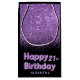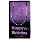 Saco de presente moderno com brilho roxo e texto de aniversário sobre preto. Este modelo atenderia a qualquer idade que for fácil de personalizar.