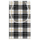 Zipper preto em ouro, padrão de xadrez de tartã branco e preto com texto de aniversário feliz. O texto pode ser editado ou excluído.