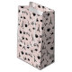 Oh la la! Nossa bolsa de presente inspirada em Paris apresenta um padrão de pássaros minúsculos, croissantes, macarões, rosas, xícaras de café, e é claro, a torre Eiffel, em preto e branco sobre um fundo pálido, para um doce e capricho na cidade das luzes.