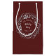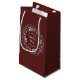 O saco do presente com seu texto personalizado que caracteriza uma grinalda do inverno com bagas brancas e o veludo vermelho maroon o fundo. Saco perfeito do presente para algum partido do Natal ou do inverno.