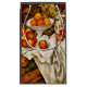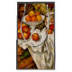 Paul Cézanne - O pintor mestre francês de Apples e Laranjas Paul Cezanne criou suas "Maçãs e Laranjas" em 1899. A famosa pintura de Cezanne apresenta um belo conjunto de maçãs vermelhas e amarelas e algumas laranjas frescas brilhantes dispostas cuidadosamente em uma mesa, com uma cortina branca nítida embaixo da fruta.
