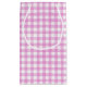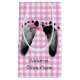Gingham cor-de-rosa com pegadas de menina com arco de bolinhas.