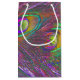 Esta bolsa de presente incrível apresenta uma fotografia festiva divertida de algumas penas de pavão tiradas usando macro fotografia. Técnicas artificiais de coloração têm sido usadas para enfatizar o detalhe. O resultado é um efeito de enxaguamento roxo com pincéis mostrando tons de vermelho e verde.
