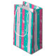 Sacola Para Presentes Pequena Pink and Mint Vertical Striped Snowflake