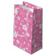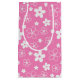SACOLA PARA PRESENTES PEQUENA PINK E FLUXAS BRANCAS
