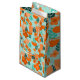 Este saco de presentes tem um design escandinavo de flores e folhas em vários tons de laranja e lacre.