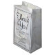 Este belo favor ou saco de presentes é perfeito para agradecer aos seus convidados ou membros da sua festa de casamento. Projetado como parte do nosso Suite de Casamento Reflexões Brancas, ele apresenta texto preto sobre um fundo refletindo flores brancas e corações. O texto é perfeitamente personalizável e diz: Obrigado por Celebrar Conosco! e apresenta os nomes dos casais e a data do casamento.