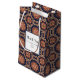 Saco para presentes com um padrão repetitivo de elementos decorativos de ornamentados em forma de flor, estrela e sol.