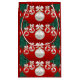 Encaminhamentos rodeados em um fundo vermelho impresso em uma bolsa de presente de feriado. Há também uma fita perto do centro do lado frontal para personalizar esta bolsa com um nome. O nome que está lá também pode ser apagado se você não quiser um, e apenas ter a fita como decoração. O verso tem um padrão repetido de enfeites rodeados. Veja mais itens de feriado ocidentais na Loja Rodeo Days.