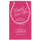 Lugar rosa quente e branco Feliz Depois de uma bolsa de casamento personalizada. Use-o como um saco de presente para suas damas de honra ou como um saco de boas-vindas de casamento ou um saco de presentes em um chá de panela. O nome da noiva e do noivo pode ser personalizado. O rosa e o branco funcionam para um casamento de primavera, um casamento de verão ou um casamento no inverno. O sutil padrão de renda adiciona elegância à bolsa.