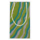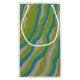 Saco de prenda de cor clara, pintado com tiras de cor limão-verde, turquesa e branca ondulada, que são mais atraentes para o olho.