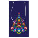 Saco de presente de Natal folclore em azul escuro com texto personalizável no verso. Folhas de embrulho e cartões de Natal disponíveis Feliz Natal!