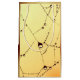 Possui uma teia de aranha com ouro, gotas de água luninescentes penduradas nela como joias brilhantes. É colocado contra um fundo de ouro leve.