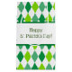 Este padrão de diamante verde e branco tem uma faixa larga branca enrolada ao redor do centro. O texto diz "Feliz Dia de São Patrício" e pode ser personalizado.