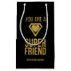 Um falso simulador de design de folha de ouro "Super Amigo". Personalize o texto personalizado acima. Você pode encontrar itens de coordenação adicionais na nossa coleção "Amigo de Super Herói Dourado".