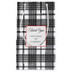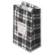 Um saco de presente de negócios ou festa editável com letras decorativas e script em um quadro quadrado emoldurado em vermelho sobre um padrão xadrez horizontal preto e branco inspirado em glen com listras finas.