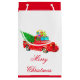 Esta bolsa de presente de Natal é mostrada com um caminhão vermelho de Natal festivo com impressão de árvore. Personalize este item ou comprar como está.