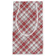 Esta bolsa de presente de Natal é mostrada em uma impressão de prata e xadrez vermelha. Pequeno tamanho mostrado Glossy mostrado Stock Image freepik.com vecteezy.com