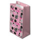 O saco de presentes de papel é mostrado a rosa com uma impressão de bolinhas bonita. Personalize este saco-presente ou comprar como está.