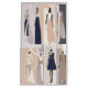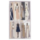 Entre na era do ouro do estilo com a Vintage Runway. Uma série de figuras compostas, alongadas, atravessam uma manta de retalhos de painéis geométricos e macios em pincel, creme, esticada e marinho profundo. Cada modelo é capturado em um momento de movimento — seja em vestidos fluidos, ternos personalizados ou vestidos de dia estruturados — evocando o drama e a graça da passarela. As linhas limpas, os tons silenciados e a composição editorial criam um equilíbrio marcante entre o charme de safra e o design contemporâneo, fazer que esta peça seja a declaração perfeita para amantes da moda.