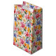 Este saco de presentes de papel de pequeno tamanho é mostrado em um adorável impressão floral lírio multicolor. Personalize este saco-presente ou comprar como está. Impressão licenciado