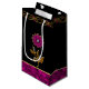 Saco bonito do presente feito no preto, com um olhar colorido orquídea da folha afiado no ouro, ao longo da parte inferior. Os gráficos de um ouro ornamentado e de uma decoração cor-de-rosa da beira do rolo da gema, funcionamentos através da parte superior do saco, com uma jóia da flor do ouro, no meio, com gema gostam de acentos. Personalize para adicionar o texto a este saco glamoroso do presente.