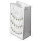 Saco pequeno do presente do aniversário de casamento com estamenha de creme do coração da pérola e fundo branco.