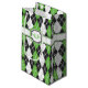 Argyle vai de 8 bits retro com este esquema de cores verde, cinzento, branco, e preto que hearkens de volta aos jogos de arcada da velha escola. Personalize o monograma neste saco para criar uma maneira verdadeiramente original e personalizada de dar um presente a alguém especial.