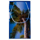 Características deste design do saco do presente uma palmeira tropical bonita contra um céu azul lindo. Aperfeiçoe para presentes, amantes da praia/verão, e partidos! Papel de embrulho e lenço de papel de harmonização também disponíveis.