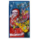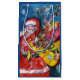 Pintura colorida, branca e artística em acrílica, Papais noeis na noite de inverno nevada, flocos de neve, brinquedos, ornamentos, plantas de inverno, bagas ocas em cores vermelho vivo, verde, branco, azul, amarelo. de Búlgaro Lumini (c)