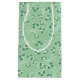 Um bonito Pequeno Saco Presente, com um padrão de Shamrocks Verde Escuro esboçado em Branco, sobre um fundo Verde-Luz. Parte da coleção Posh & Painterly 'Shamrocks', este padrão pode ser ajustado para ajustado qualquer Gift Bag ou Box.