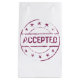 Este saco-presente elegante apresenta um símbolo de crachá "Aceite" ousado, perfeito para celebrar conquistas, marcos ou aprovações especiais. Quer seja para o sucesso acadêmico, ofertas de emprego, ou realizações pessoais, este design adiciona um toque de reconhecimento e orgulho à sua dádiva.