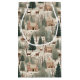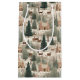 A pleasant winter scene with deer roaming amongst a landscape of village houses and robust pine trees.