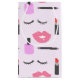 Um design bonito da composição, caracterizando o batom vermelho, os lábios, um lápis roxo do eyeliner, as pestanas falsas, e o verniz para as unhas do rosa.