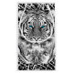 Olhos azuis arrojados, rosto de Tigre Retrato em design de estilo preto e branco. Uma ideia de presente de excelente. Mensagem