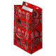 Este saco de presentes tem um design Namorados de corações com topos no topo e fundos para fundos com dentro de gráficos num campo de vermelho.