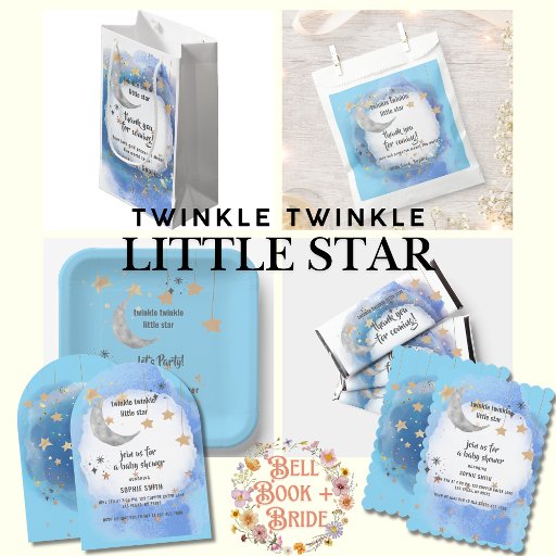 Sacola Para Presentes Pequena Twinkle Twinkle Little Star, Blue And Gold