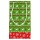 Sacola Para Presentes Pequena Verde Festivo e Reindeador Vermelho | Flocos de ne
