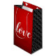 Nada diz "você me completa" ou "sua melhor/outra metade" do que este saco-presente, que apresenta um esquema de cor vermelho-preto, um falso XOXO repetitivo gravou o padrão de fundo, e a palavra "amor" rastejada em um Design de letra estilo manuscrito © W.H. Sim. Mais informações em zazzle.com/expressionsoccasions
