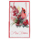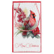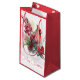 Bonito bolsa de presente de Natal feita em vermelho e branco, com bela trabalho de arte de cardeal vermelho e flores. Personalize o texto, com seu próprio cartões de natal.