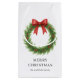 Saco de presente de Natal moderno com um design simples e mínimo com uma coroa aquática juntamente com a saudação editável "Feliz Natal" e o nome da sua família.