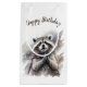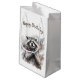 Um saco de presente de aniversário bonito com um guaxinim debaixo da neve. Personalize este produto adicionando as informações da sua parte.