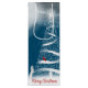 Árvore de Natal de estrela branca em azul com uma lua de cheio brilhante, coelho bonito e cardeal vermelho. Sobreposição de flocos de neve. O texto pode ser editado ou excluído.