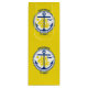 Saco do Presente do Vinho com a cidade de Anchorage, no Alasca; bandeira amarela com selo branco com ilustração de um navio azul e âncora