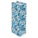 Esta bolsa de presente é mostrada em um adorável impressão floral azul. Impressão licenciado brilhante mostrado